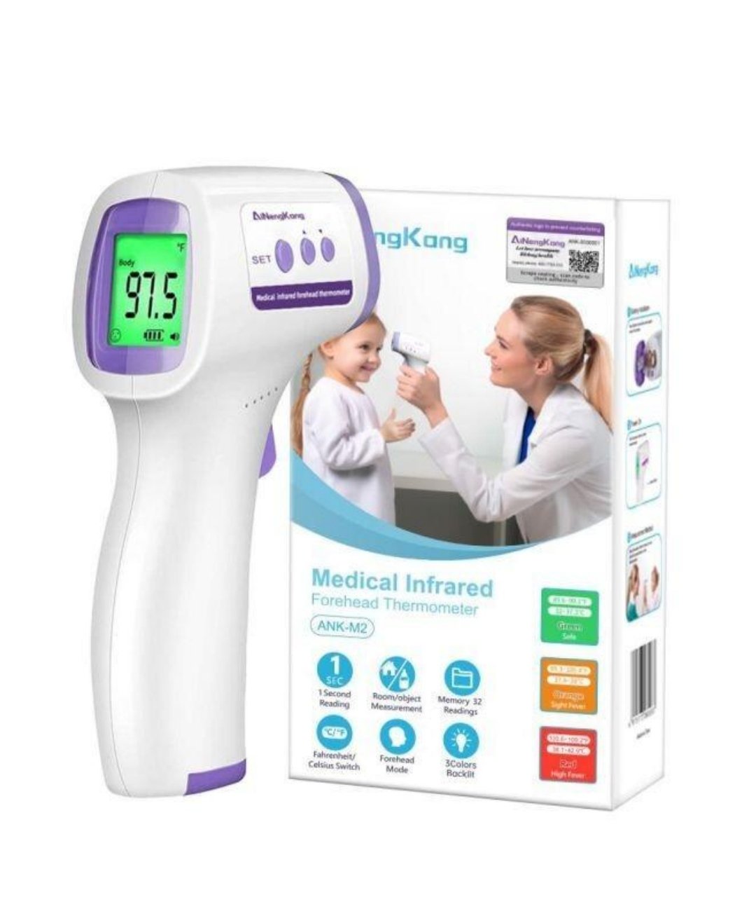 ميزان حرارة بالأشعة تحت الحمراء ANK-M2 مصمم لقياس درجة حرارة الجسم والأسطح بسرعة ودقة عالية دون الحاجة للاتصال المباشر (Non-Contact). يتيح الحصول على النتائج خلال ثوانٍ قليلة مع شاشة رقمية واضحة وإضاءة خلفية لتسهيل القراءة. مناسب للاستخدام المنزلي أو في المستشفيات والمراكز الصحية، ويعتبر أداة موثوقة لمراقبة الحرارة لجميع الأعمار، من الأطفال إلى البالغين، مع تصميم صغير وخفيف للحمل والاستخدام اليومي