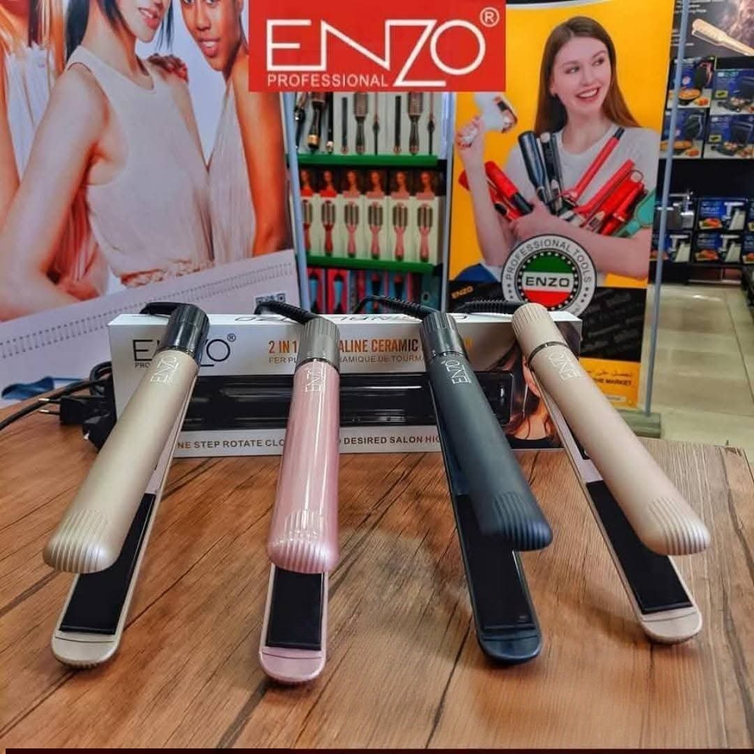 جهاز Enzo 2 في 1 يجمع بين ستريتنر وتمليس الشعر وفير لتجعيد الشعر بنفس الجهاز. حرارة تصل حتى 410°F مع سلك دوار 360°. يأتي مع كفالة سنة كاملة