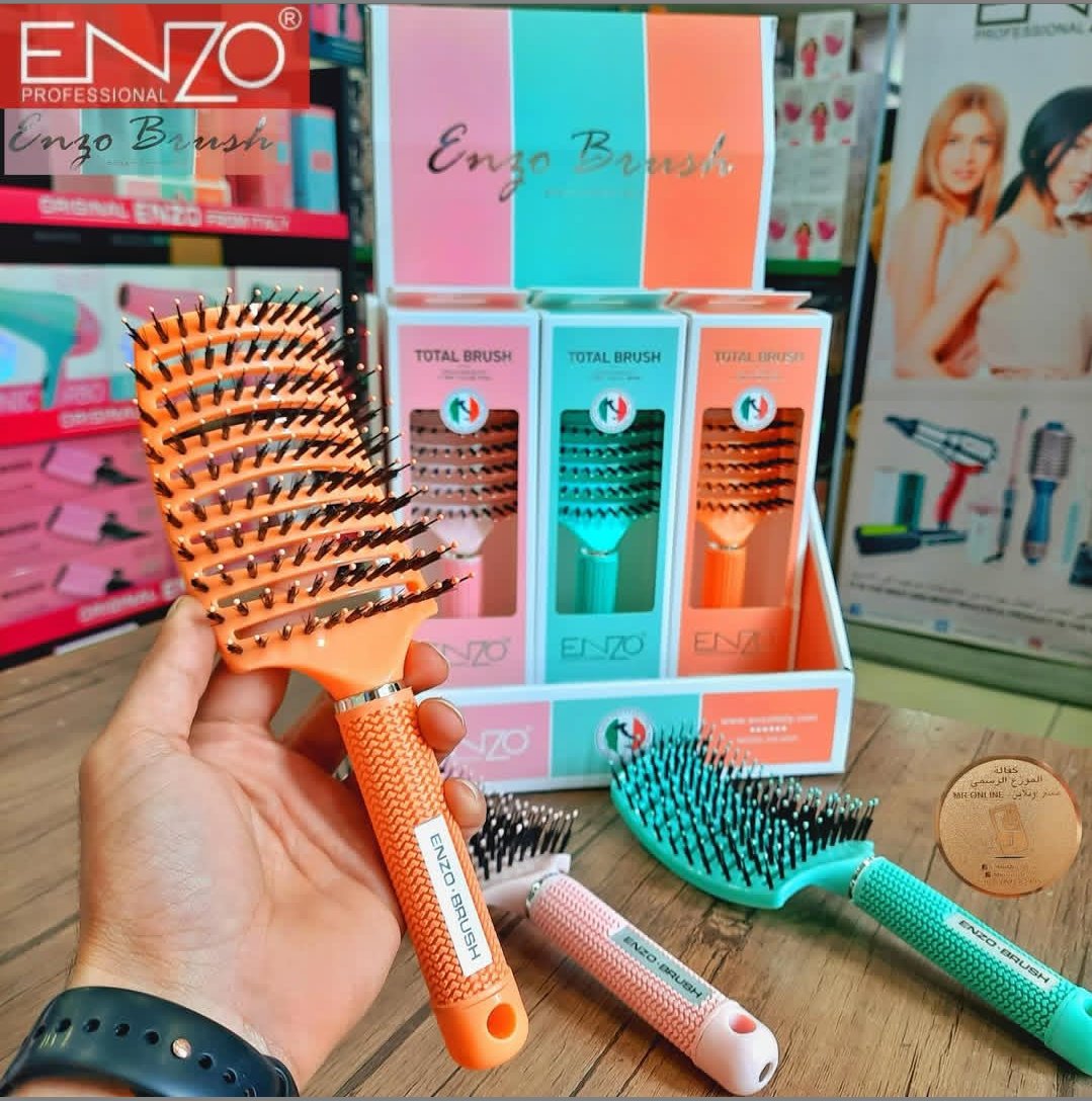 فرشاة شعر Enzo عادية متوفرة 3 ألوان لتسريح الشعر بسهولة والحصول على شعر مرتب وناعم بسرعة.