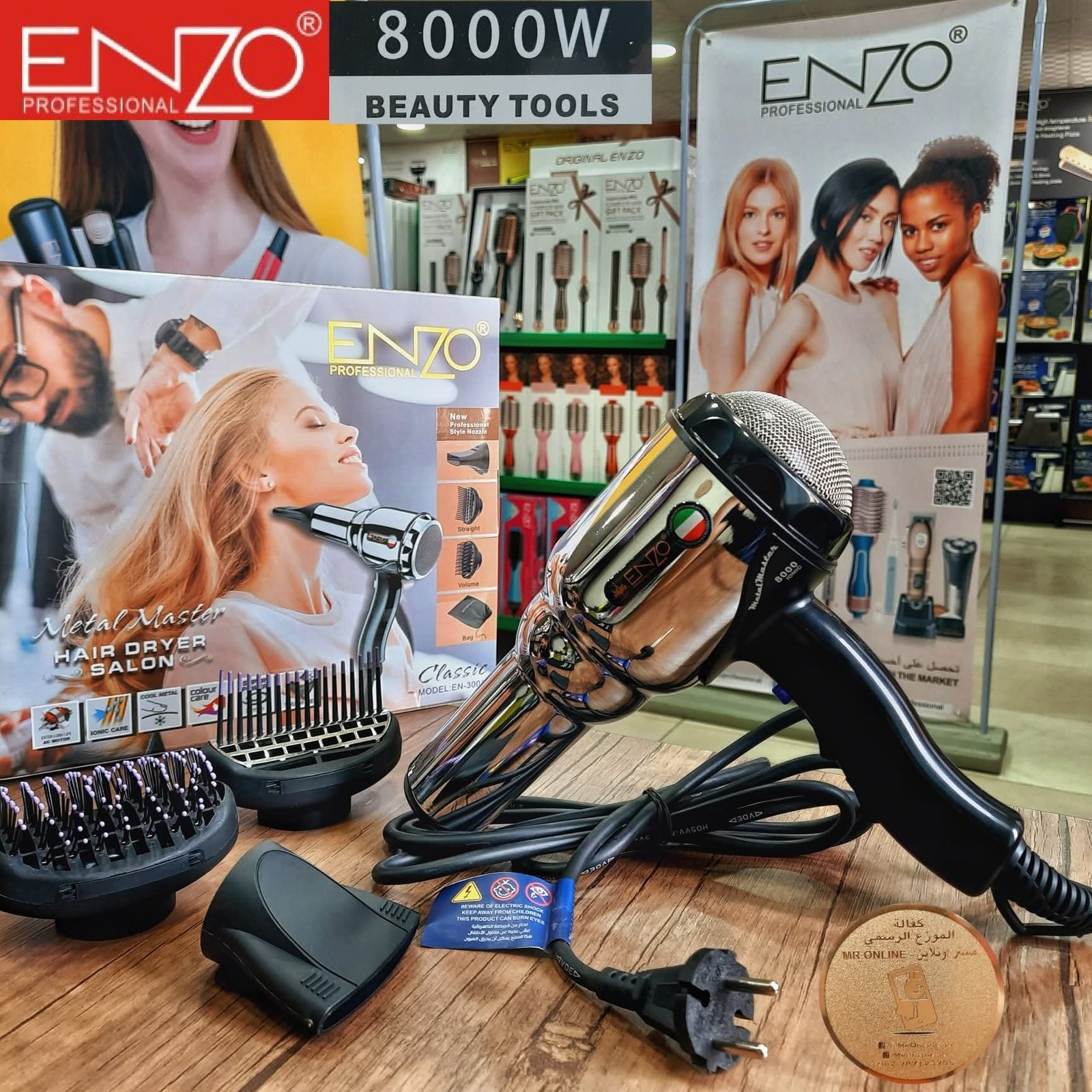 Enzo Stainless Steel Hair Dryer 8000W | سشوار إنزو ستانلس – قوة 8000 واط