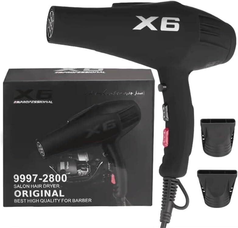 مجفف الشعر الاحترافي ENZO X6 مصمم ليمنحك نتائج صالونات التجميل بسهولة بفضل محرك قوي عالي الأداء يوفر تدفق هواء قوي يساعد على تجفيف الشعر بسرعة وكفاءة. يتميز بقوة تصل إلى 2500 واط مما يجعله مناسباً للاستخدام المكثف في الصالونات أو في المنزل. �