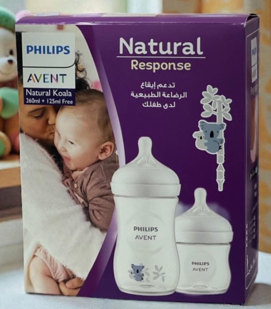 Philips Avent Natural Response Koala Feeding Bottle 260ml + 125ml Free Offer – عرض رضاعة افينت ناتشورال ريسبونس كوالا 260 مل + 125 مل مجاناً، رضاعة بيبي، حلمة تحاكي الرضاعة الطبيعية، مضاد مغص BPA Free